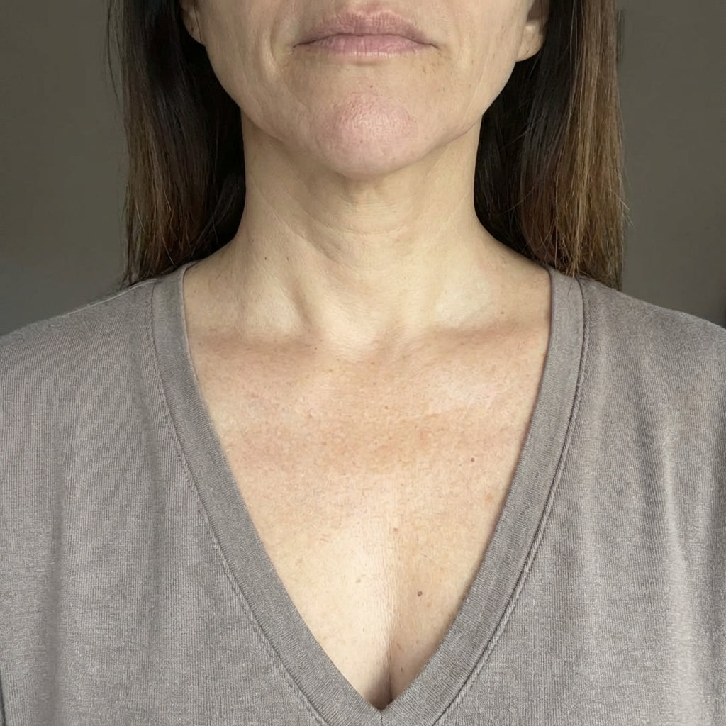 Mit den Jahren verliert besonders das Dekolleté an Spannkraft. Feine Linien, Knitterfältchen und Sonnenschäden werden sichtbarer - oft schneller als im Gesicht. Unsere LUMERA LED Hals & Dekolleté Maske kombiniert gezielte Rot- und Nahinfrarot-Lichttherapie, um die Kollagenbildung zu unterstützen und die Hautstruktur sichtbar zu verbessern.